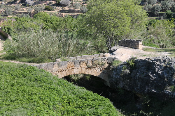 El puente viejo salva el barranco de los Escurines y destaca por su tosca obra de enormes piedras irregulares superpuestos sin tallar.